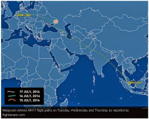 Malaysia Airlinesin Boeing 777 -kone oli 17. heinäkuuta 2014 matkalla Amsterdamista Malesian pääkaupunkiin Kuala Lumpuriin, kun se ammuttiin alas Itä-Ukrainassa, alueella, joka oli Venäjä-mielisten kapinallisten hallussa. Kaikki MH-17-lennolla olleet 298 ihmistä kuolivat.