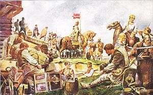 A. Krūkas glezna ”CēsisLatvijas karoga šūpulis 1279. g.”, kurā mākslinieks mēģinājis rekonstruēt latgaļu 13. gadsimta karogu.